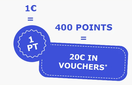 * On the basis of 1€ = 1 point. Purchase voucher valid the day after its edition for a minimum purchase of 50€. The voucher is valid for 3 months from the date of issue and and cannot be combined with any other discount. A return implies the withdrawal of the points corresponding to the amount of the returned products. Each discount can only be used once, and in the case of a return, it is lost. Only 2 loyalty voucher maximum can be applied on one order.